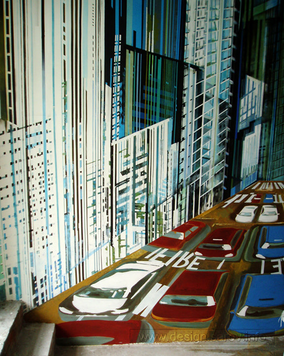 :: ''Мегаполис''. Роспись в кафе на речном вокзале.